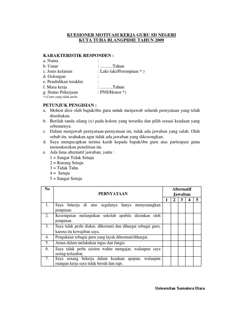 105+ contoh soal tes pengetahuan umum masuk kerja terupdate. Pada kegiatan interview, bisa dipastikan anda akan diberikan sejumlah pertanyaan yang cukup menarik dan unik yang berhubungan dengan diri pribadi. Dz (0215101007) aries cakra barlian (0215101185) tegar prasetya (0215101212) gali rizky (0215101294) hana annisa nabila (0215101565) laras hilmi (0215101860. Sikap ini tidak saja dimiliki oleh individu, tetapi juga oleh kelompok bahkan masyarakat. Kuesioner motivasi dapat digunakan untuk memahami situasi mana yang meningkatkan atau menurunkan motivasi dan dapat membantu anda mendapat kepuasan kerja. Motivation letter atau biasa disebut dengan statement of purpose adalah sebuah surat yang menjelaskan tentang mengapa kita ingin mengikuti sesuatu. Menurut wibowo (2014), terdapat tiga faktor pendorong utama motivasi kerja, yaitu: Tapi nggak usah takut ya soal matematika dasar disini tentu tidak akan sesulit saat ikut tes untuk kuliah. Kuesioner jenis ini mencoba menilai bagaimana kondisi yang ada di tempat kerja dapat mempengaruhi motivasi anda (yakni apakah anda akan bekerja lebih keras. Soal soal psikotes matematika dan jawabannya. Simak contoh soal ulangan atau ujian tengah semester untuk smp kelas 8. Hal tersebut dilakukan dengan exemplify, communicate dan chalange. Doc kuesioner motivasi kerja untuk penelitian kuantitatif eko.