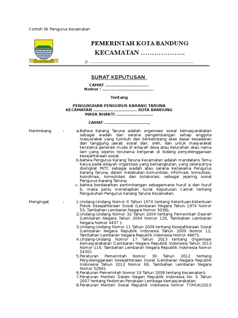 Sk pengukuhan karang taruna unit rw 014 kel pematang pudu 171 karang taruna pematang pudu.