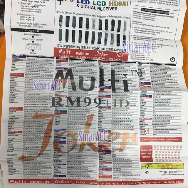 Gambar daftar kode receiver joker. Terlaris remot remote dvd multi universal joker rm99 id. Min.minta tlng remot multi rm 99+id sy ga bisa masuk ke digital . Coz kertasny da ilang :( saya cari pon . Beli produk remote tv receiver joker berkualitas dengan harga murah dari berbagai pelapak di indonesia. Remote ac multi / universal joker ac3000 rm 99. Gan , bantuin saya please. Remote control can use for audio preamps and av receiver. Memberikan data lengkap kode remot multi joker rm99 id untuk receiver digital parabola, serta cara memasukkan kode remot multi joker rm99 id . Code list of universal remote joker multi rm99+id. Hampir 92% tv yang dijual di indonesia bisa menggunakan remote ini garansi boleh. Tersedia ✓ gratis ongkir ✓ pengiriman sampai di . Remote tv lcd led remote aircon remote receiver parabola.